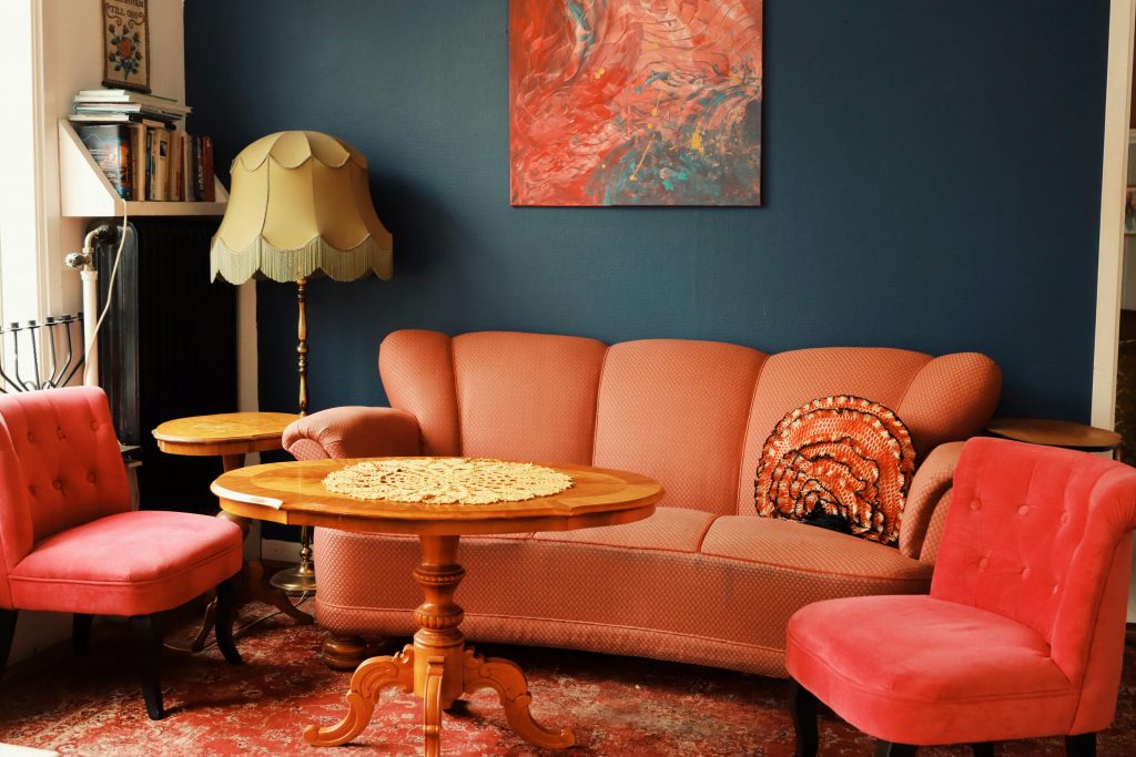 Deep blue shades are gaining popularity as a softer alternative to black. Navy or midnight blue walls, rugs, or upholstery provide depth while remaining inviting. When paired with warm lighting and subtle metallic accents, blue creates a modern yet timeless moody aesthetic.